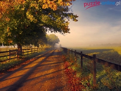 Pola, Jesień, Wiejska, Droga, Drzewa