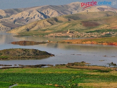 Puzzle Pola, Rzeka, Góry, Domy