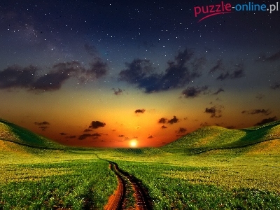 Puzzle Pola, Zachód, Słońca, Ścieżka