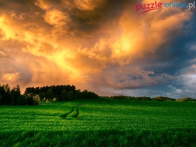 Puzzle Pola, Zachód, Słońca, Trawy