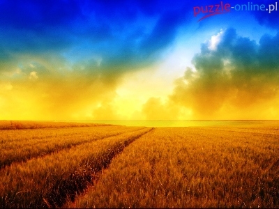 Puzzle Pola, Zachód, Słońca, Zboża