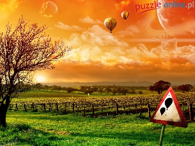 Pola, Znak, Zachód, Słońca, Balon