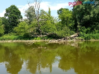 Puzzle Połamane, Rzeka, Odbicie, Drzewa