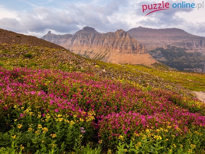 Góry, Polana, Kwiaty, Niebo, Łąka