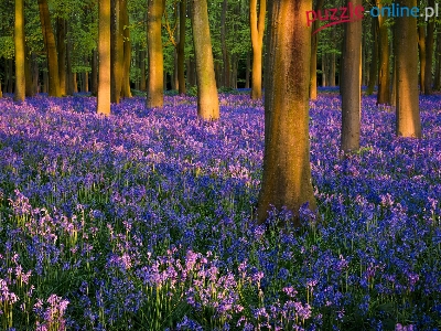 Kwiaty, Drzewa, Las, Polana, Hiacyntowce, Niebieskie