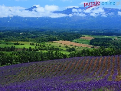 Pole, Chmury, Góry, Drzewa, Lawenda