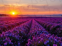 Lawenda, Zachód słońca, Pole, AI, Drzewa