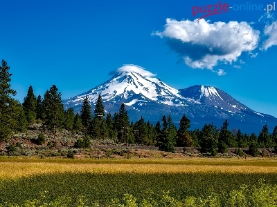 Puzzle Pole, Wulkan, Drzewa, Niebo