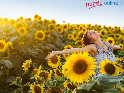 Puzzle Pole, Radosna, Dziewczyna, Słoneczników