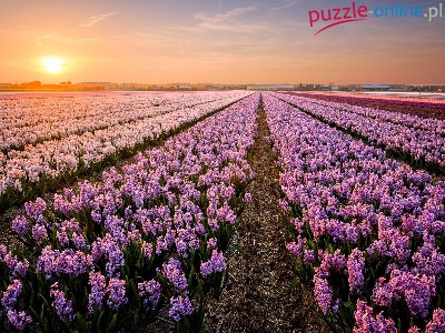 Puzzle Hiacynty, Pole, Kwiaty, Słoneczny blask