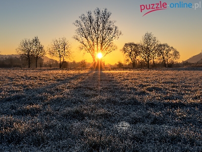 Puzzle Drzewa, Pole, Łąka, Zachód Słońca