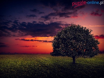 Puzzle Pole, Zachód, Słońca, Drzewo