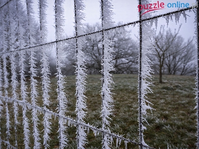 Lód, Druciany, Szron, Pole, Płot, Oszroniony, Zima