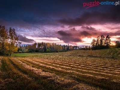 Pole, Drzewa, Finlandia, Gmina Teisko, Chmury