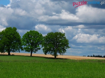 Puzzle Pole, Drzewa, Wiosna, Chmury