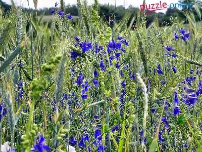 Puzzle Polne, Zboże, Fioletowe, Kwiatki