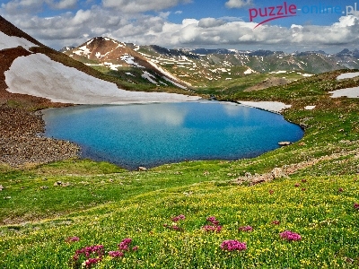 Polne, Śnieg, Góry, Jezioro, Kwiaty