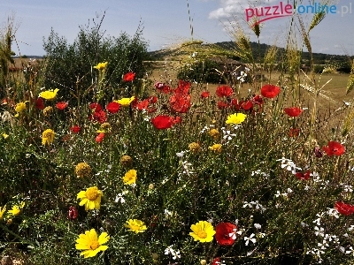 Puzzle Polne, Łąka, Kwiaty, Kłosy