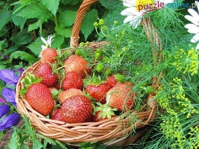 Puzzle Polne Kwiaty, Truskawki, Koszyk