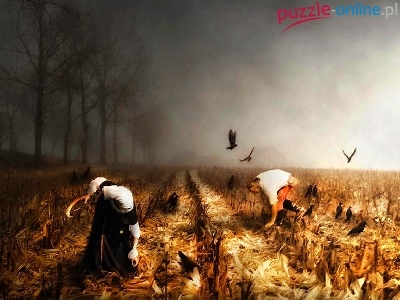 Puzzle Polowe, Krajobraz, Prace, Ludzie