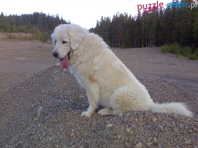kamienie, Polski owczarek podhalański, drzewa Biały, Szczęśliwy, Piesek zielona, Owczarek podhalański, trawa słoma, Szczeniaki, Owczarki podhalańskie, płot mały, Biały, piesek psy, Brudne, las skórzana, Głowa, Owczarka podhalańskiego, obroża Trawa, Dwa, Pieski, Niebo Polski owczarek podhalański, Biały, język Szczeniak, Owczarek podhalański