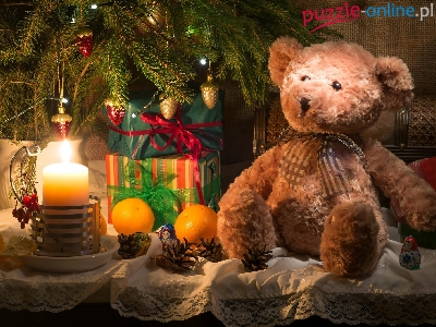 Pomarańcze, Miś, Choinka, Świeca, Pluszak