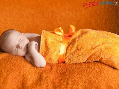Pomarańczowa, Śpiące, Wstążka, Małe, Dziecko, Frotta