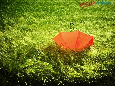 Puzzle Pomarańczowa, Bujna, Trawa, Parasolka
