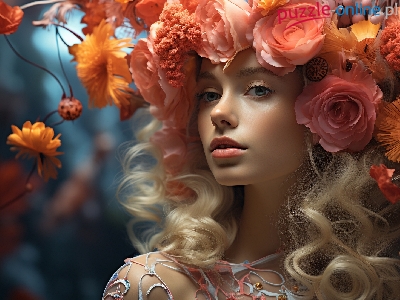 Dziewczyna, Pomarańczowe, Blondynka, Grafika, Kwiaty