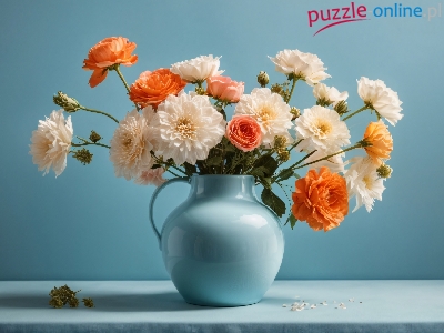 Niebieski, Białe, Kwiaty, Pomarańczowe, Dzbanek, Bukiet