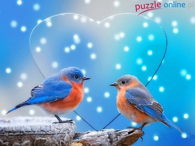 Puzzle Pomarańczowe, Dwa, Niebiesko, Ptaki