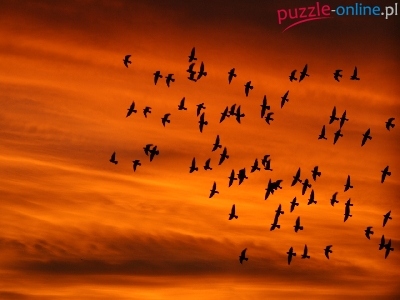 Puzzle Pomarańczowe, Czarne, Ptaki, Niebo