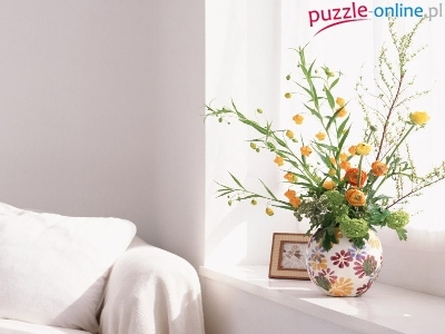Puzzle Pomarańczowe, Okno, Wazon, Kwiatki