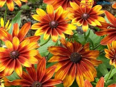 Puzzle Żółta, Kwiaty, Pomarańczowo, Rudbekia