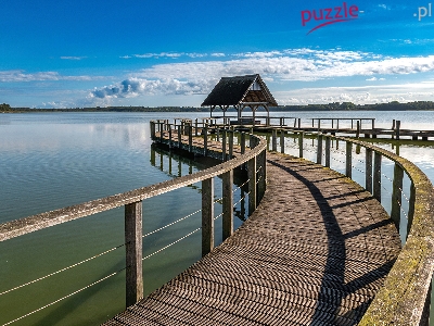 Jezioro, Pomost, Drewniany, Niebo, Altanka
