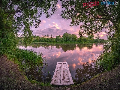 Puzzle Drzewa, Jezioro, Zielone, Pomost