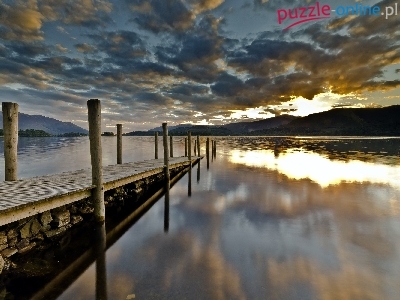 Pomost, Lasy, Chmury, Jezioro, Góry