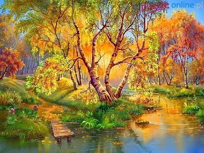 Pomost, Jesień, Rzeka, Kładka, Drzewa