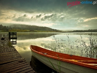 Puzzle Łódź, Kot, Pomost, Jezioro