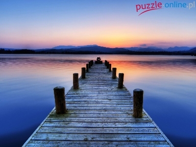 Pomost, Niebo, Góry, Zachód, Woda, Jezioro