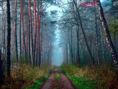 Puzzle Poranek, Las, Droga, Mgła