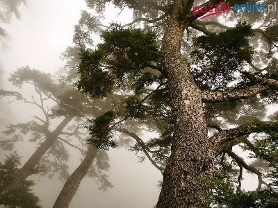 Puzzle Poranek, Drzewa, Sosny, Mgła