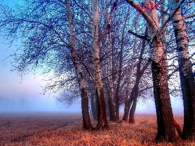 Poranna, Jesień, Pola, Drzewa, Mgła