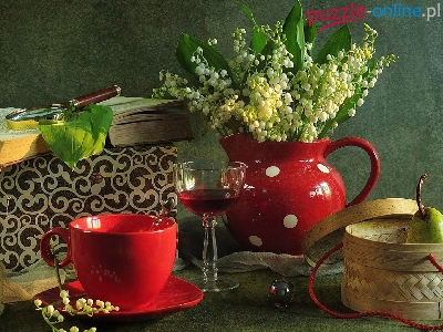 Porcelana, Konwalie, Książka, Czerwona, Koszyk