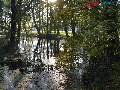 Puzzle Porośnięte, Staw, Drzewa, Bluszczem