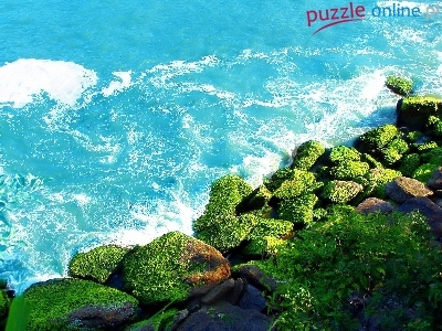 Puzzle Porośnięte, Morze, Kamienie, Glonami