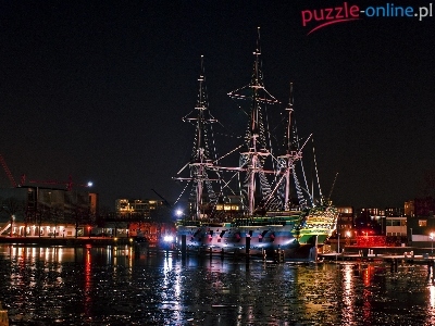 Puzzle Port, Żaglowiec, Maszty, Noc