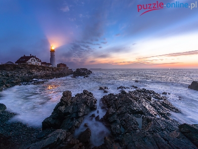 Latarnia morska Portland Head Light, Morze, Stany Zjednoczone, Stan Maine, Skały