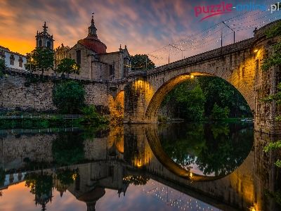 Kościół, Most, Rzeka Tamega, Ponte Sao Goncalo, Odbicie, Amarante, Portugalia, Klasztor, Światła