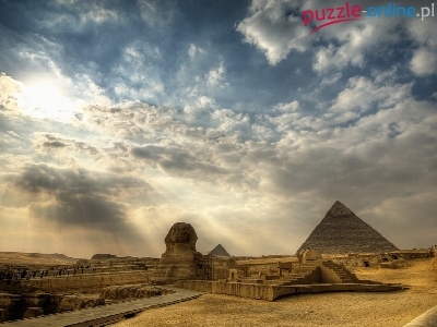 Posąg, Chmury, Pustynia, Piramidy, Sfinksa